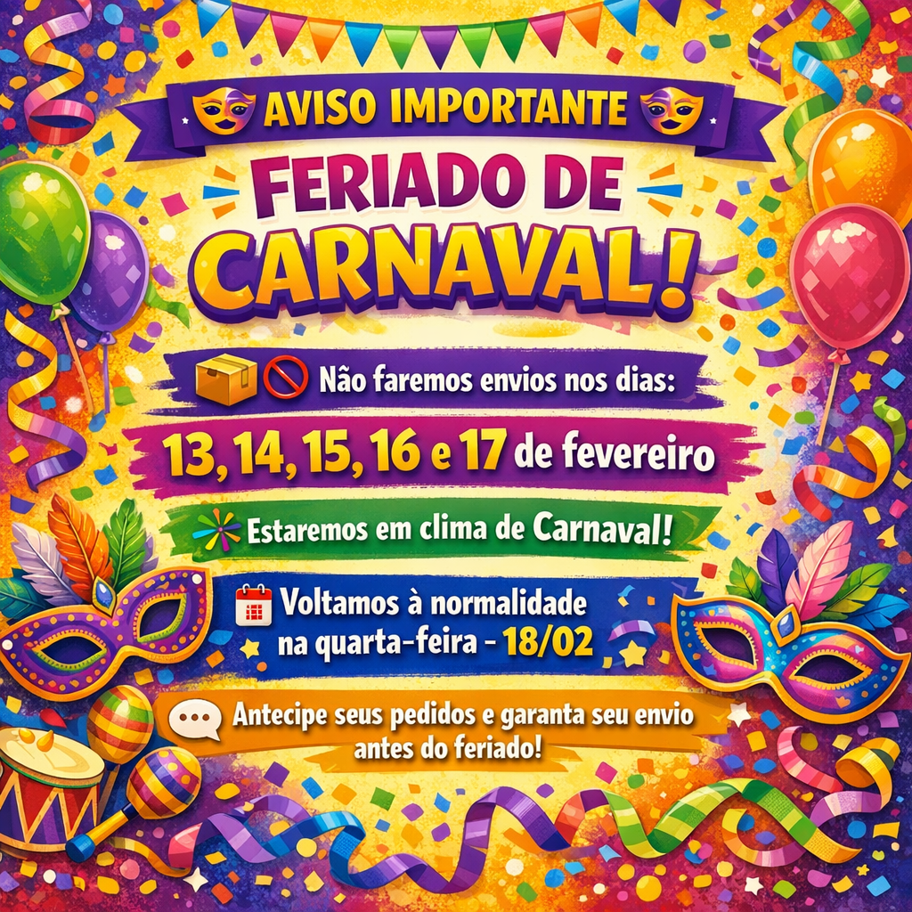 Pedido até 12:00hrs o envio é no mesmo dia. De Seg à Sex